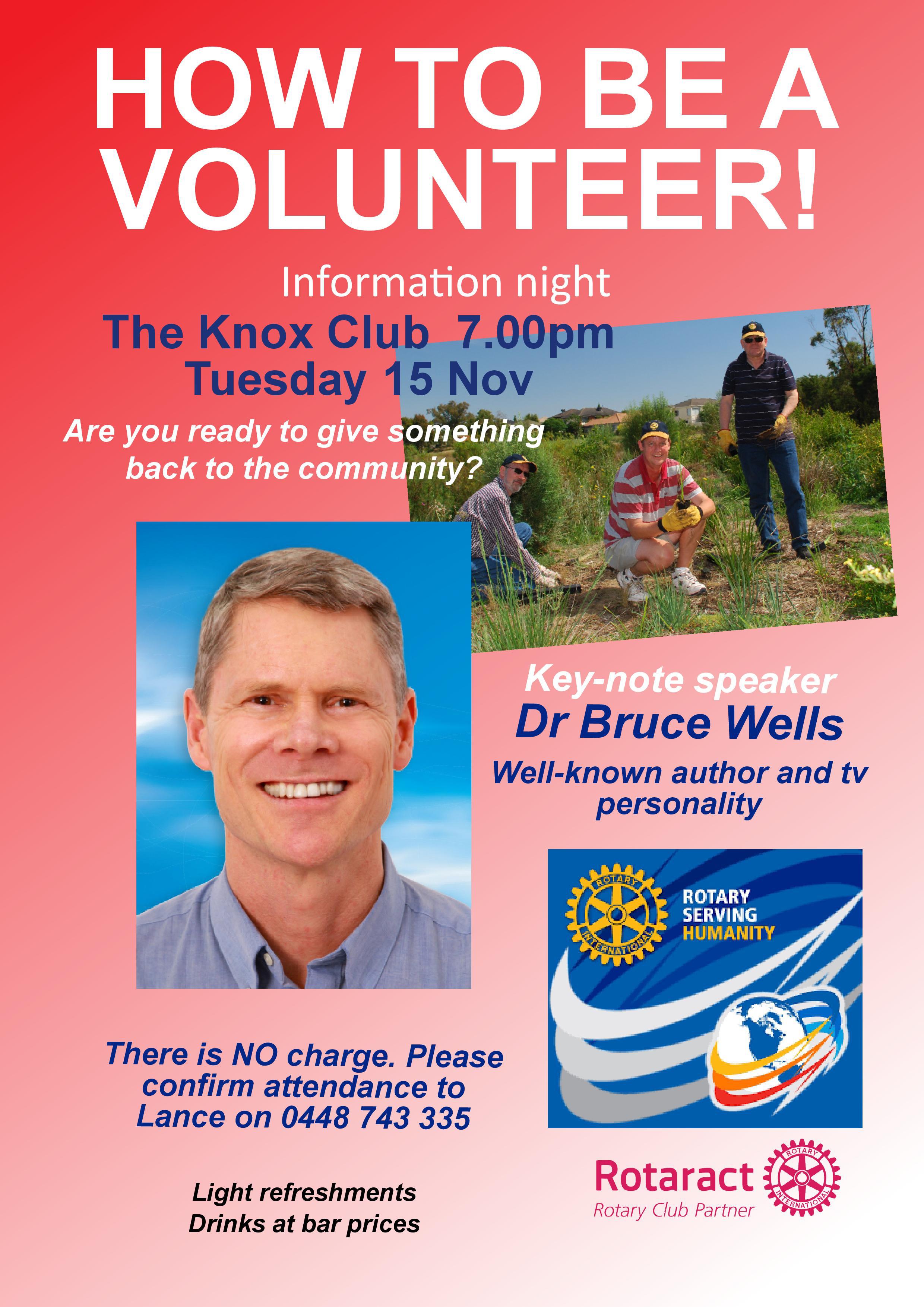 He is coming to support the Rotary Clubs in the Knox area and speak on:
